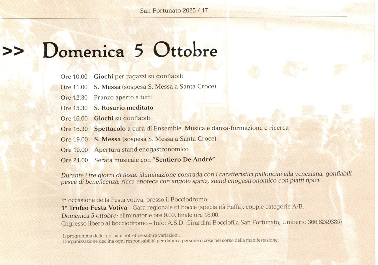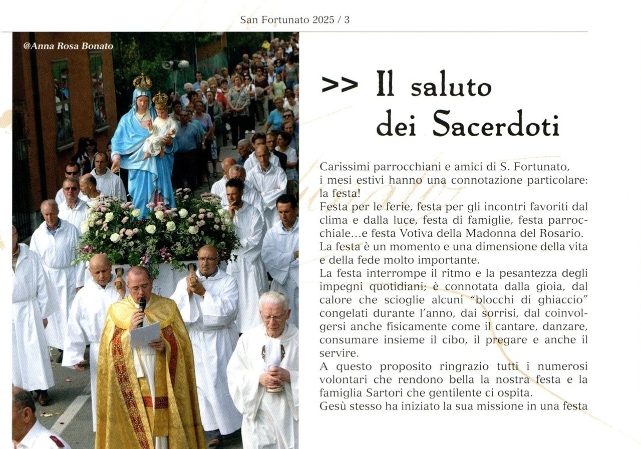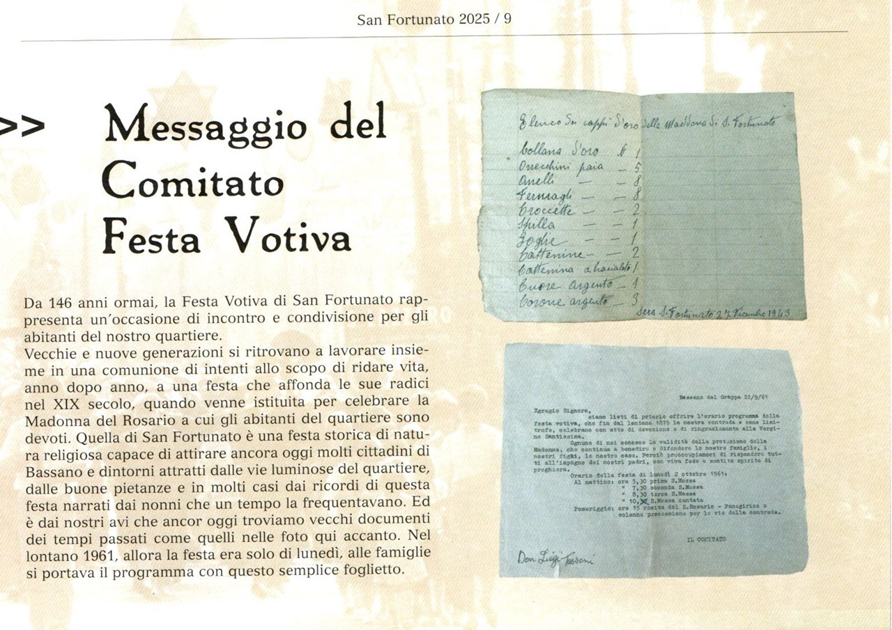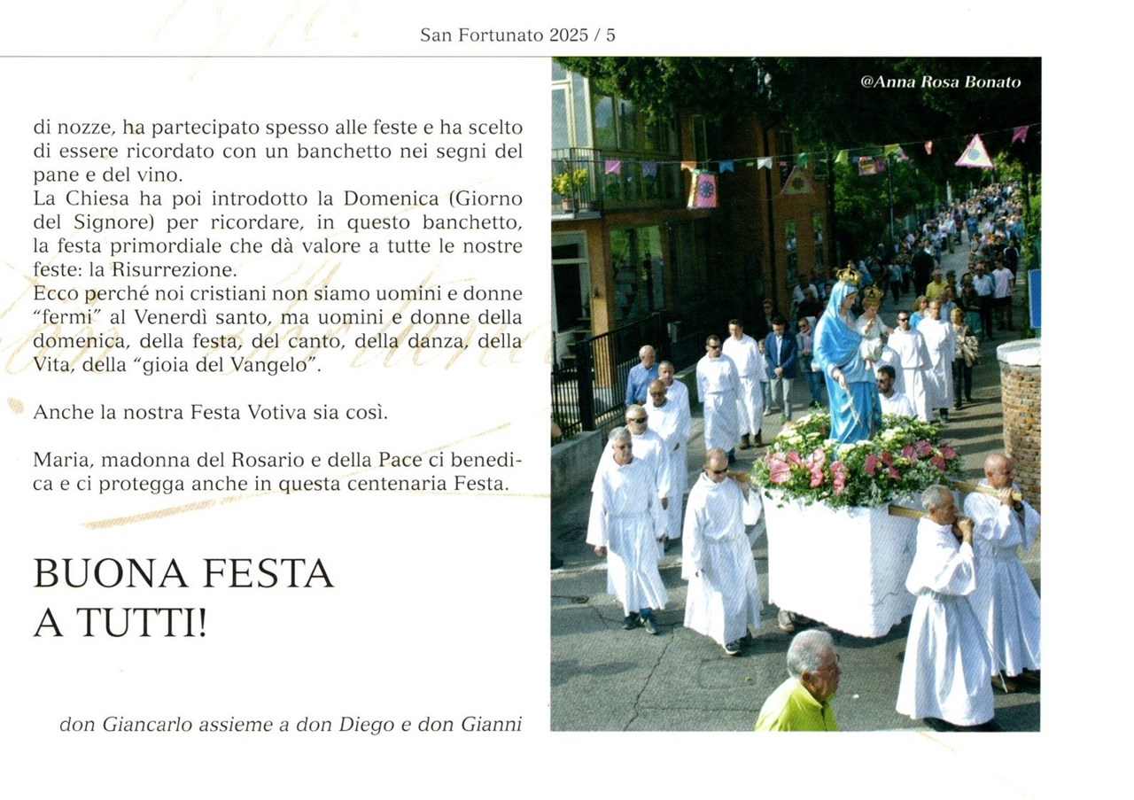 Quest’opera, frutto della passione, dell’impegno e della generosità di molti, vuole essere un segno di attenzione e di affetto per il nostro quartiere e per la gente che lo abita. Nel ringraziare di cuore tutti quelli che hanno contribuito alla sua realizzazione, la affidiamo, come un ideale testimone, ai nostri giovani con l’auspicio che vogliano continuare ad impegnarsi concretamente per conservare e ravvivare anche in futuro l’amore per le tradizioni, la sensibilità sociale e il senso di appartenenza che fanno del quartiere di San Fortunato un’accogliente, vivace comunità.